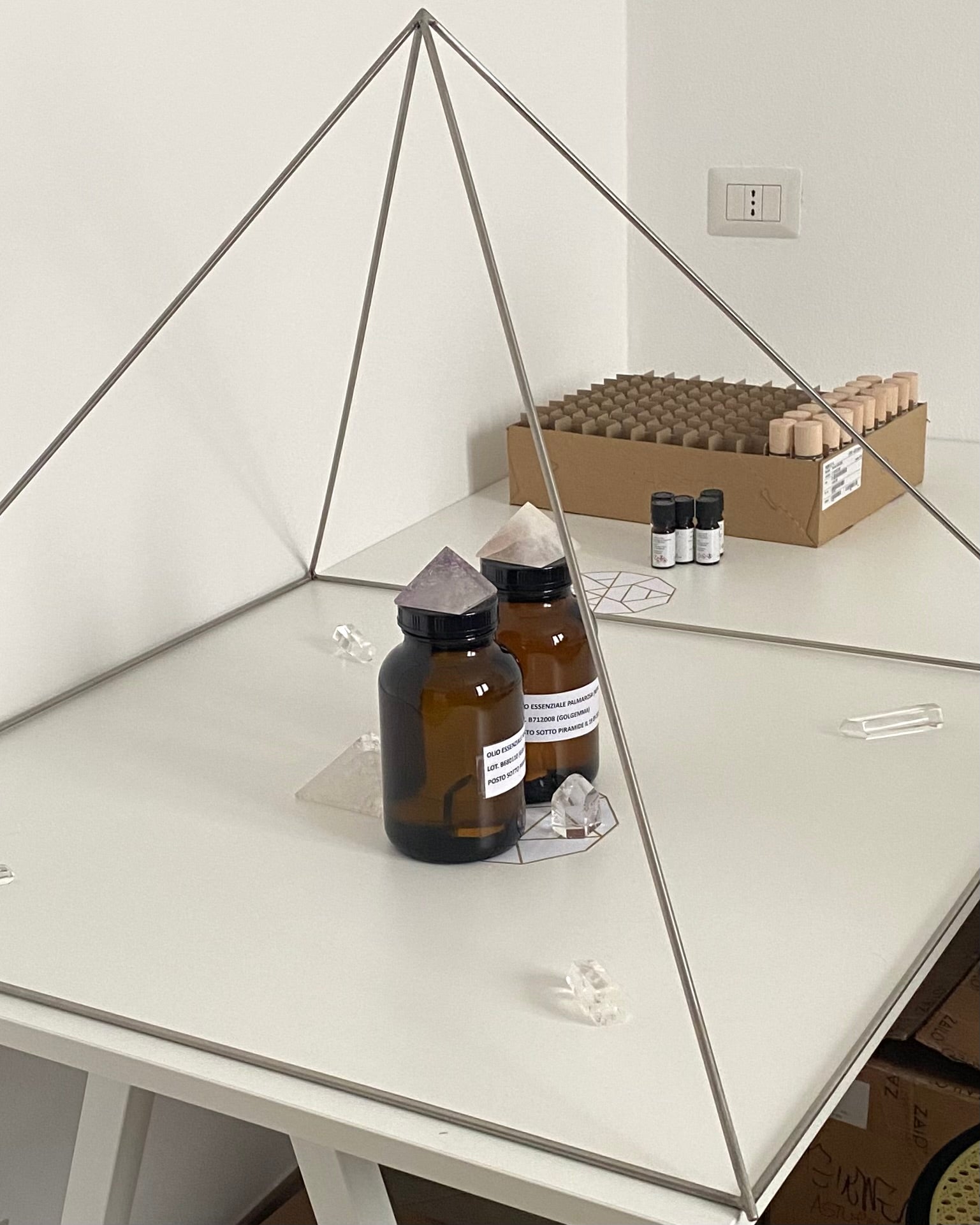 Tutti i nostri oli essenziali vengono sottoposti ad un trattamento energetico per renderli ancora più efficaci e duraturi (posizionati 9 giorni sotto ad una piramide energetica, circondati da Quarzi Ialino Maestro).