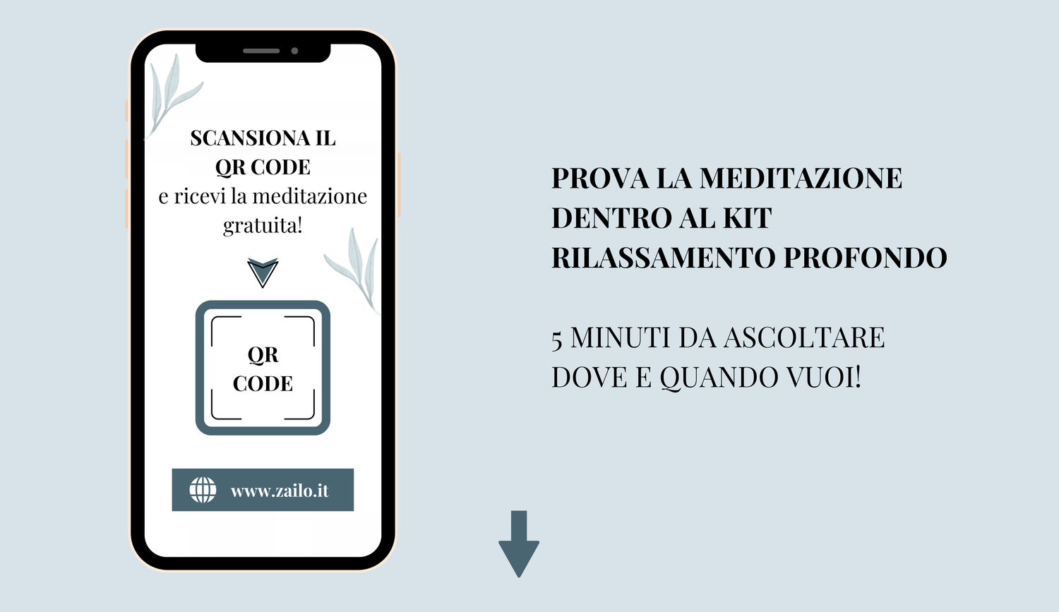 Istruzioni semplici per il rituale quotidiano, e un QR Code che ti porta a una meditazione guidata da ascoltare mentre usi il kit.